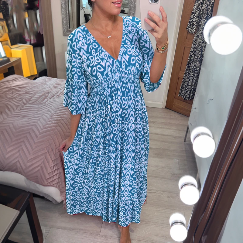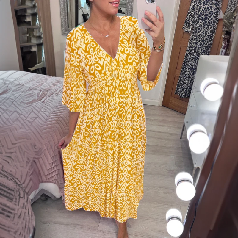 ❤️🔥2025 Summer Sale 49% OFF🌷Bohemian casual print V-neck shirred waist long dress