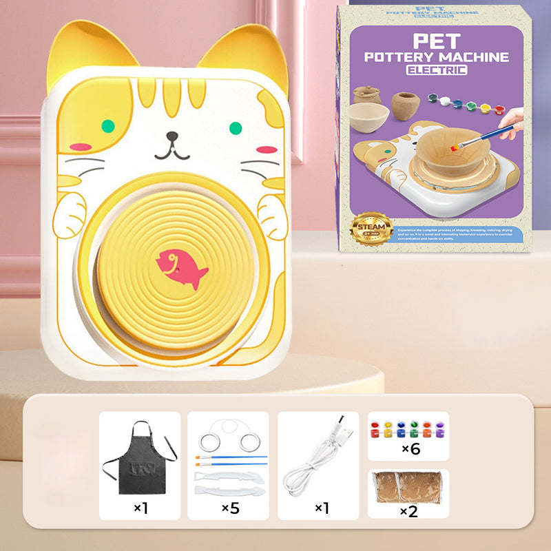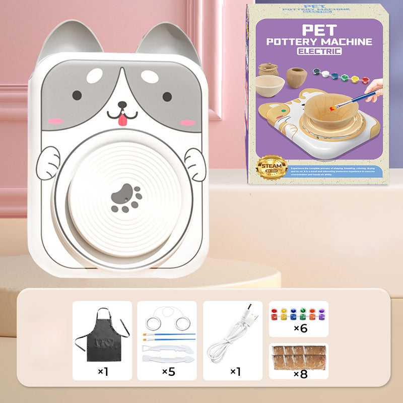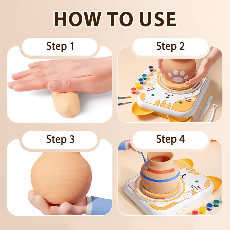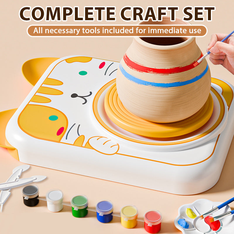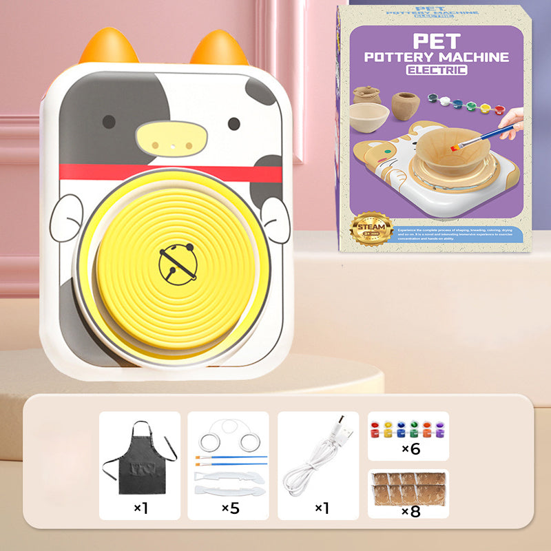 ADORABLE ANIMAL DESIGNS – Featuring cute cat, bunny, puppy, and cow styles, this pottery wheel makes crafting extra delightful! The simple design lets kids start creating instantly—no complicated setup needed. Includes everything for a complete experience.