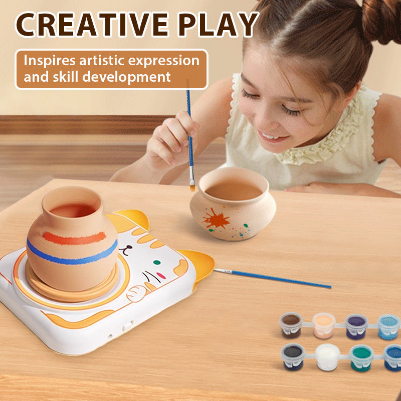 CREATIVE POTTERY MAKING & PAINTING – Spark your child’s creativity with this all-in-one pottery wheel set! They can shape clay, paint their designs, and develop fine motor skills, all while expressing their artistic side in a fun and hands-on way.