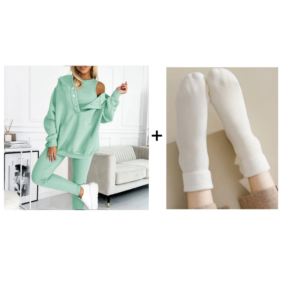 STYLISH AND TRENDY: Don't compromise on style while staying comfortable. This three-piece set combines casual and contemporary design elements to create a fashionable ensemble. The neutral color options and minimalistic details make it easy to pair with your favorite accessories and footwear, allowing for an effortless style that suits your taste.