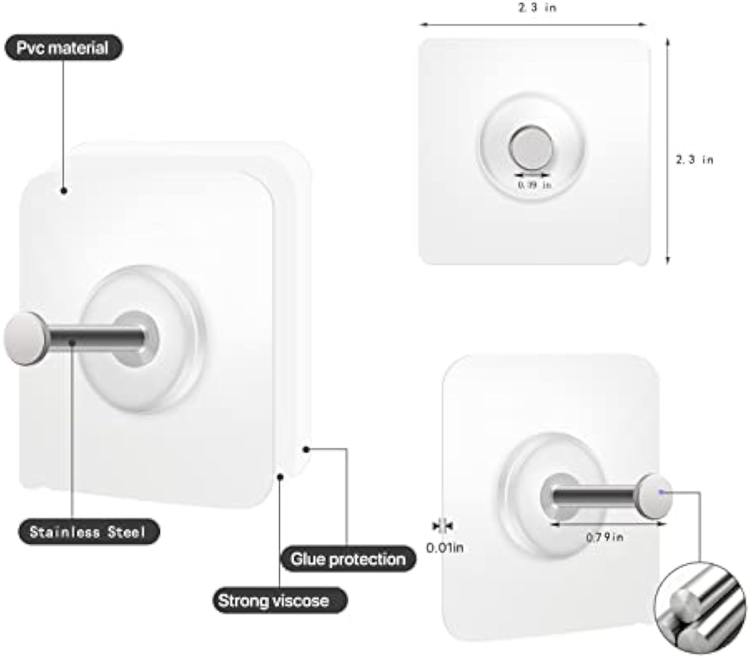 - HEAVY DUTY ADHESIVE HOOKS- Enhance your bathroom organization with our self-adhesive hooks! Perfect for holding various items like umbrellas, scarves, towels, robes, bags, coats, keys, purses, and even dog leashes and baseball caps. Keep everything within reach and organized with ease.