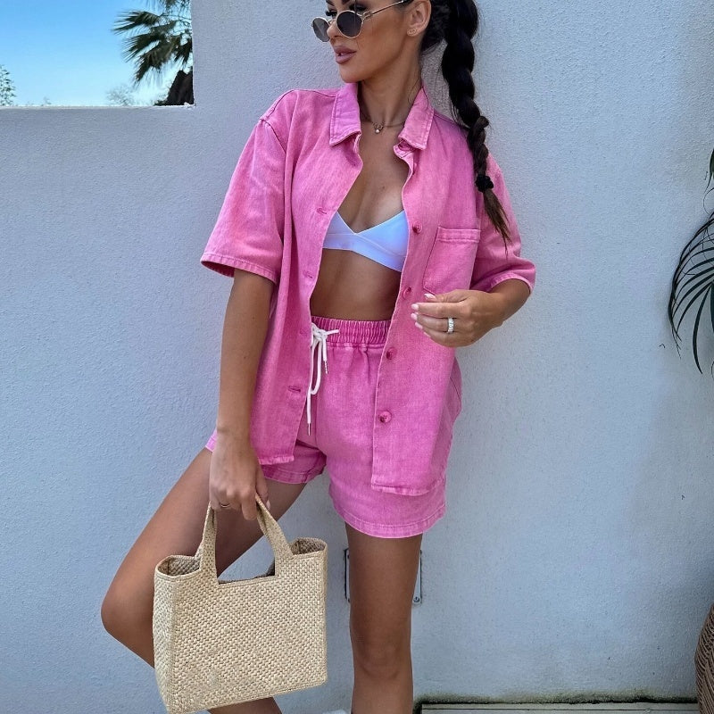 DURABLE DENIM FABRIC – BUILT FOR EVERYDAY WEAR: Crafted from dependable denim material, this set offers long-lasting wear while maintaining softness against the skin. Available in three fresh colors, it balances durability and style for frequent use throughout the season.