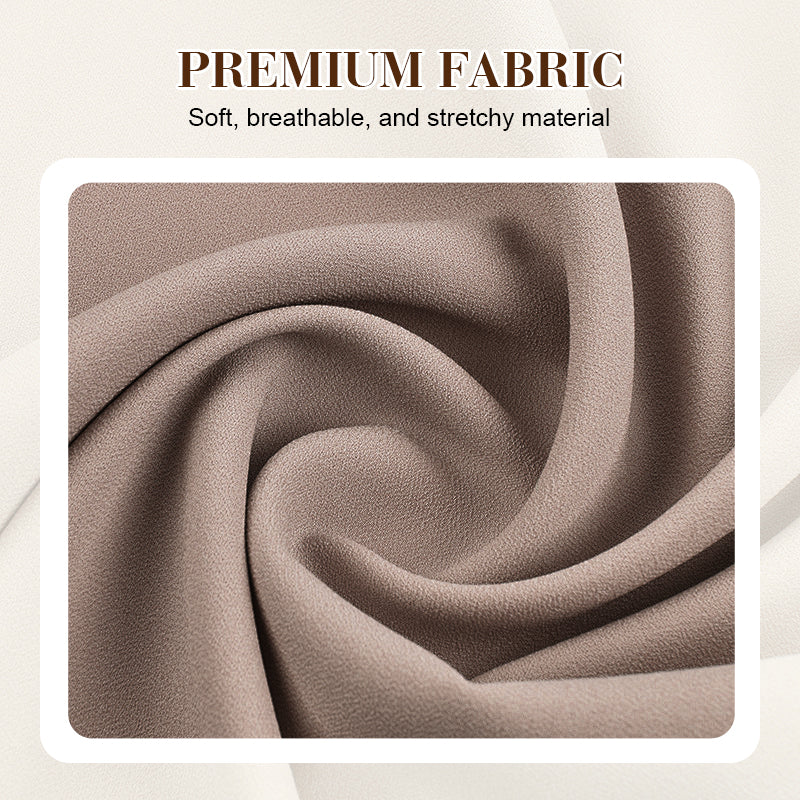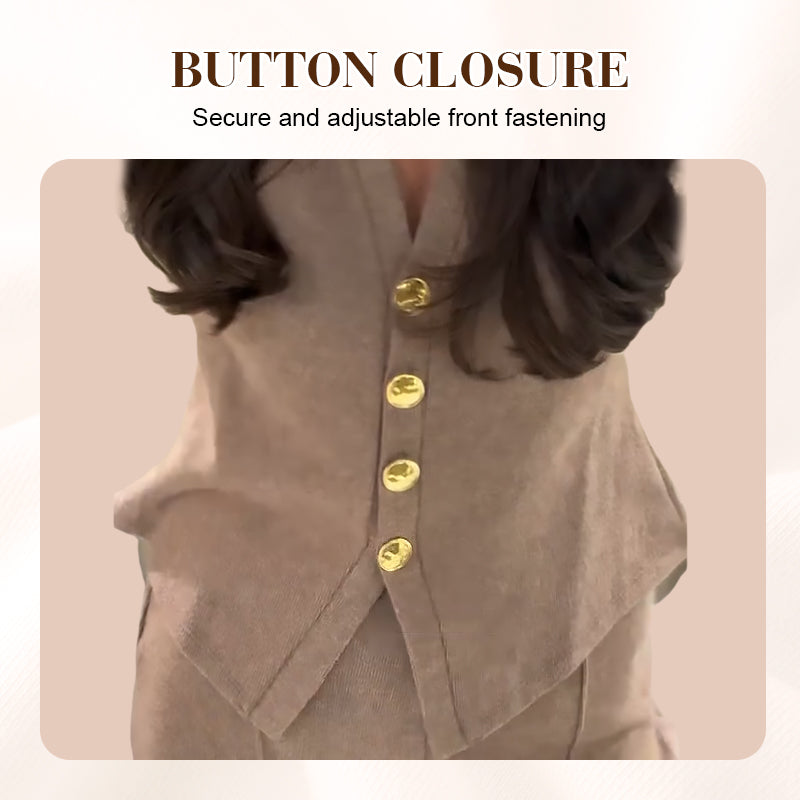 HIGH WAIST PANTS – These pants feature a high-waist design that supports the midsection and creates a smooth, flattering silhouette. The waistband sits comfortably without digging in, balancing style and functionality. The high-rise cut elongates the legs visually and pairs effortlessly with the cardigan or other tops, providing an elegant yet practical look for various occasions.